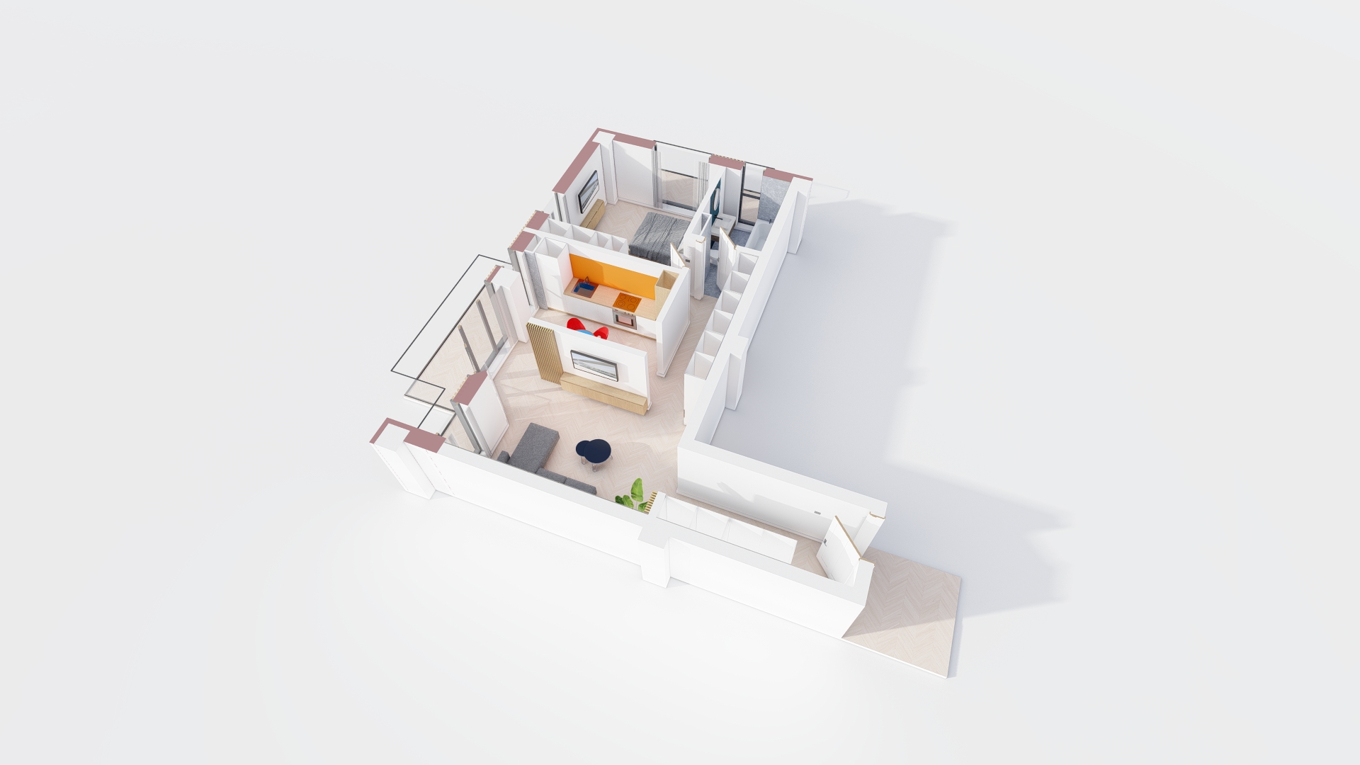 Apartamentul 2E3 situat la Etaj 2.